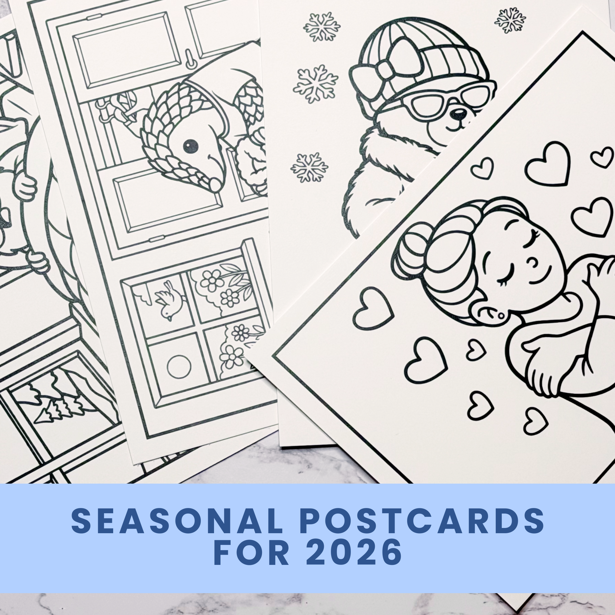 Make 2026 your best coloring year ever by being able to participate in our fun coloring tutorials and challenges with this exclusive postcard bundle. Our collection includes 16 LIMITED EDITION postcard prints on super thick postcard paper!